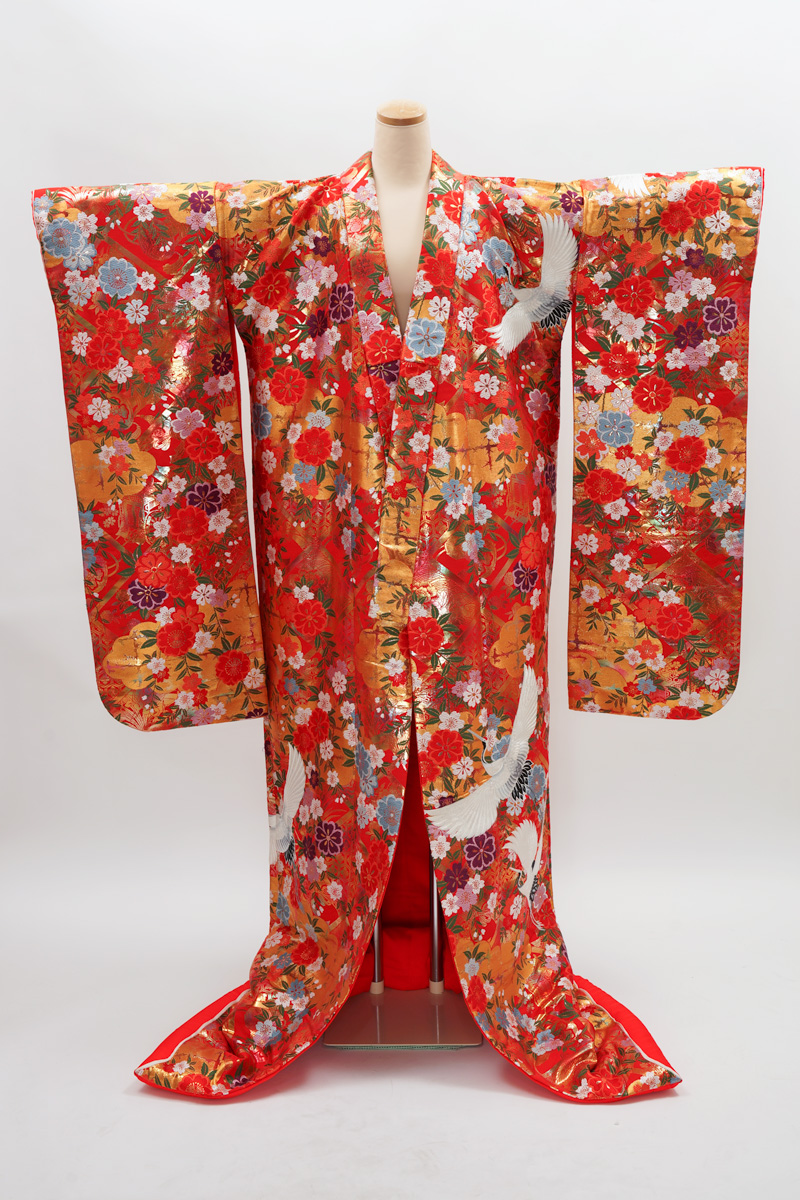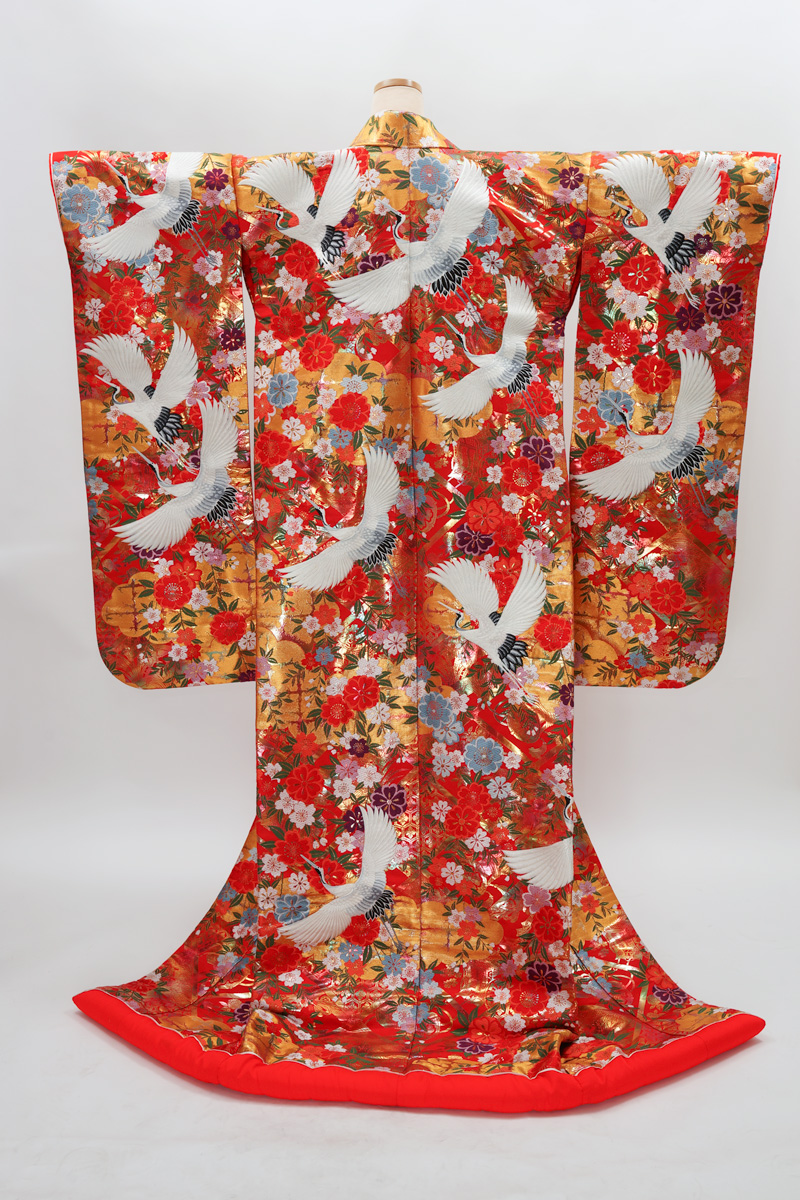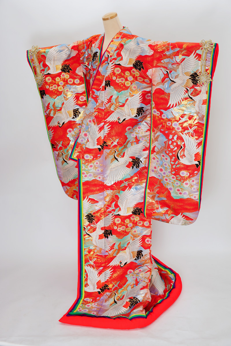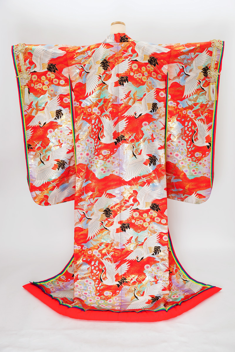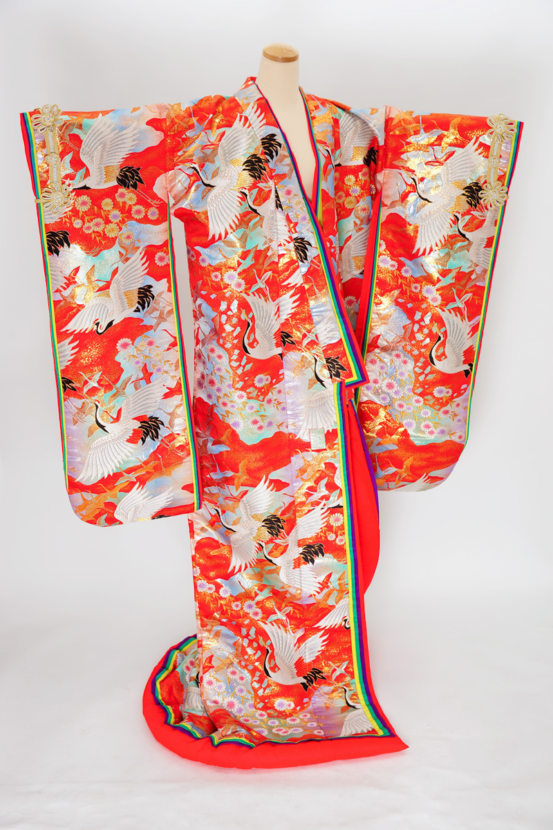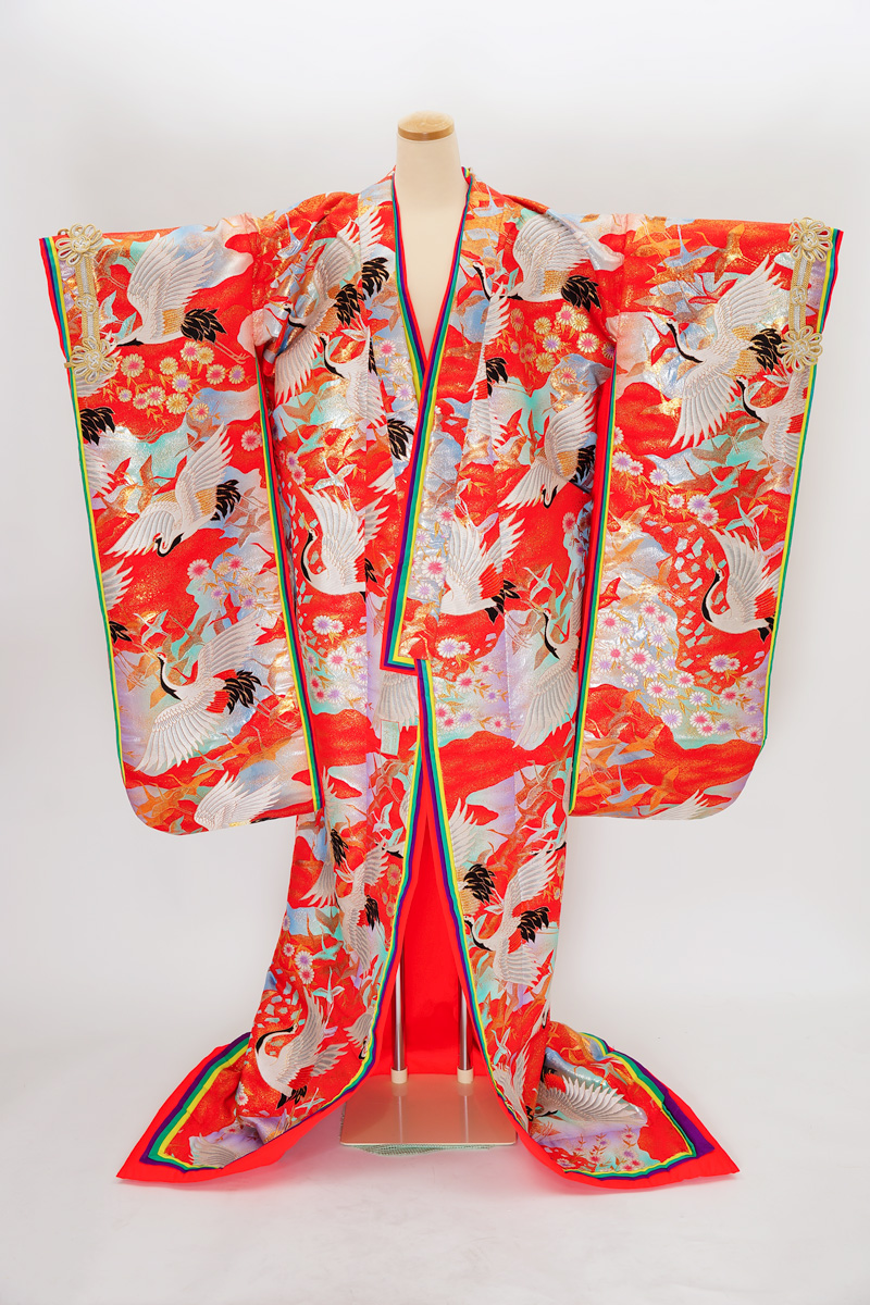 | 赤系に鶴や菊の入った色打掛。 ¥108,900 | |