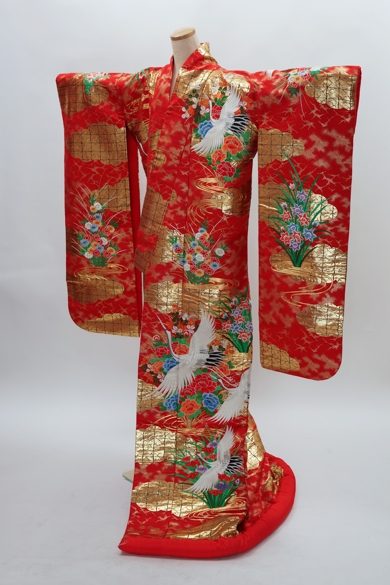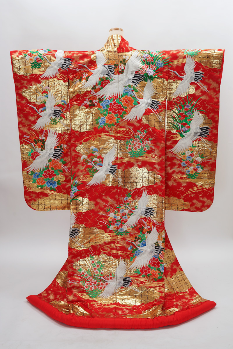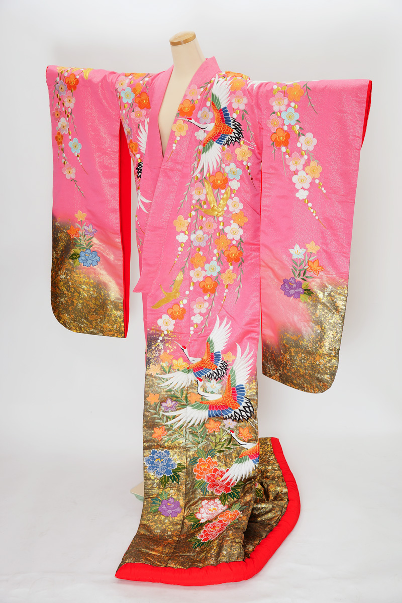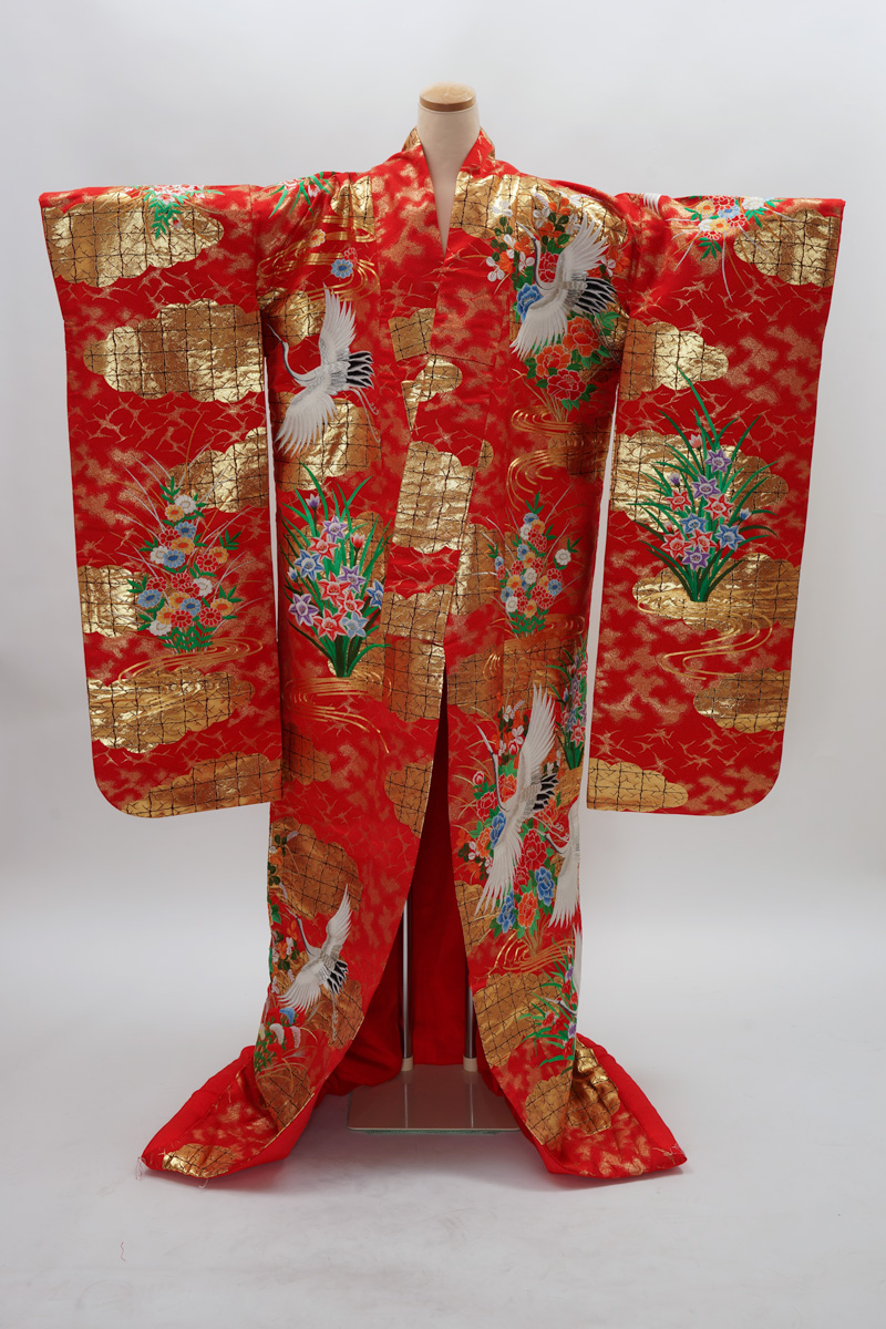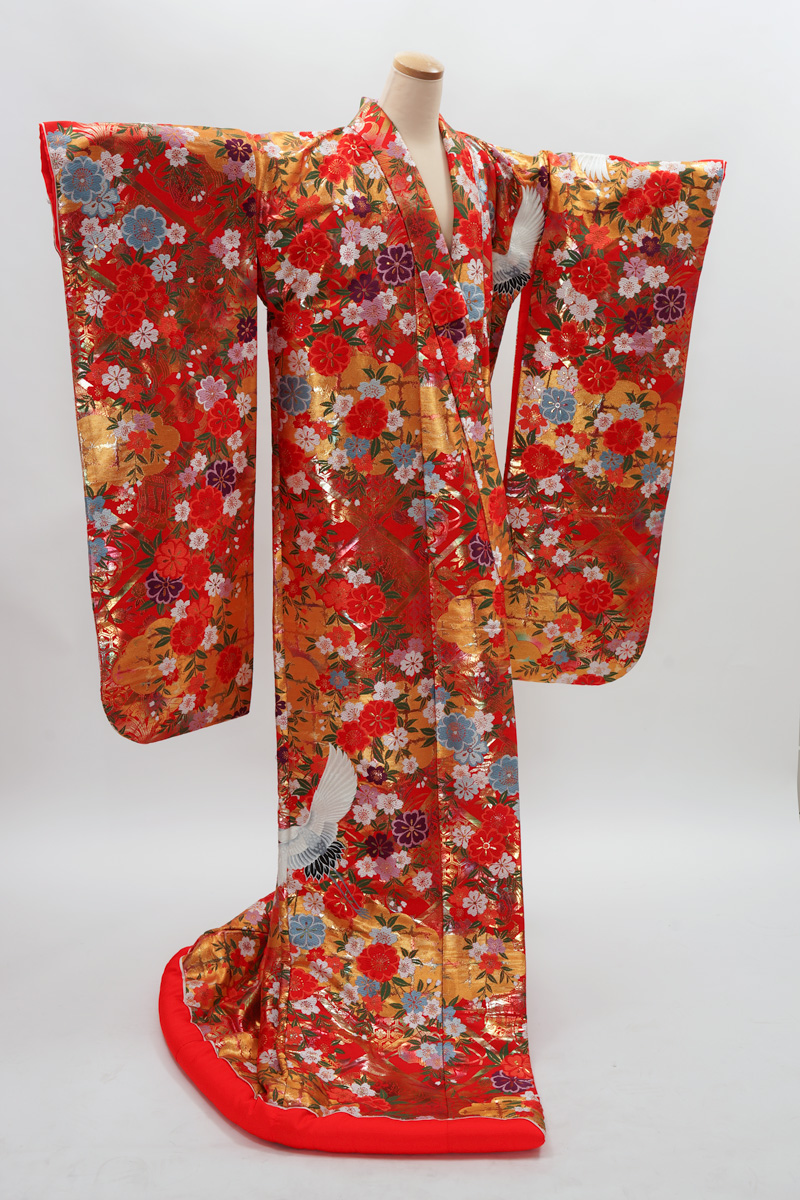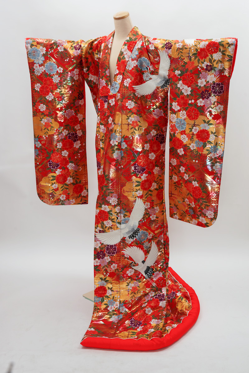 | 赤系に鶴や菊の入った色打掛。 ¥108,900 | |