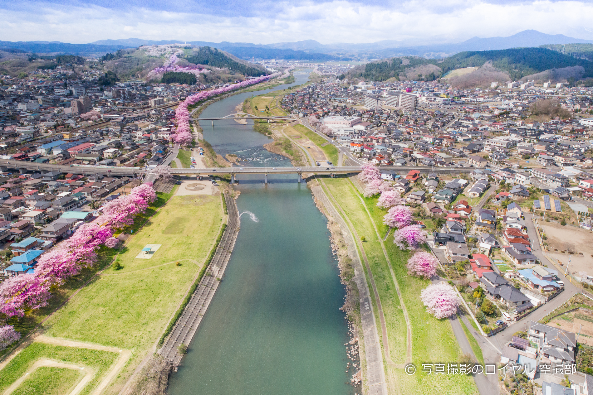 宮城県大河原町・一目千本桜の空撮