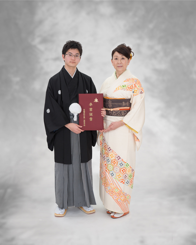 男性の方におきましても、小学校卒業式・高校卒業式・大学卒業式にて紋付袴をお召しになり、卒業式式終了次第、証書と共に記念撮影するスタイルもここ近年増えてきております。お客様の要望に応じて柔軟に対応致しますのでどうぞ御利用ください。